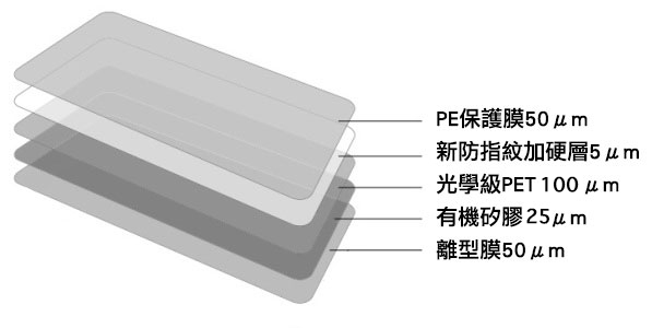 在保護貼加上AFP2塗層,讓保護貼擁有絕佳的疏水疏油能力,可有效防止指紋、汗水、油污沾附,輕輕一擦不留痕跡。